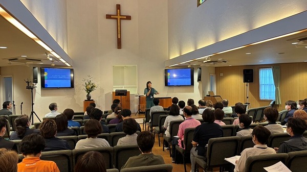 | 6/22(日):午後からは大野チャペルで キンバリー姉が証をしてくださいました。 これまで9カ月のお働きに感謝します。 |