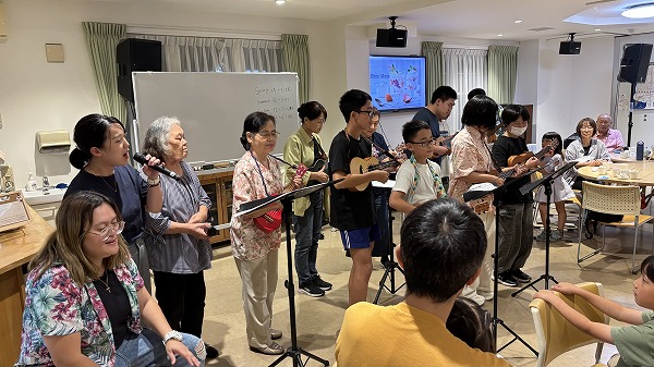 | 7/19(土):英会話クラス、ウクレレクラスの発表会として アコースティックナイトが開催されました。 良い雰囲気の中で楽しい時を持つことができ感謝いたします。 |