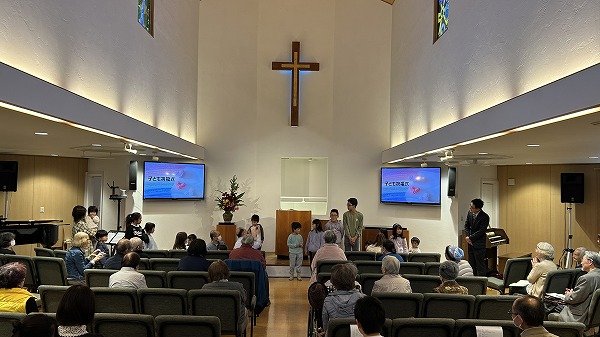 | 5/4(日):礼拝に教会員の姉妹がお子さんを連れて 初めて出席してくれました。お子さんの成長をお祈りします。 |